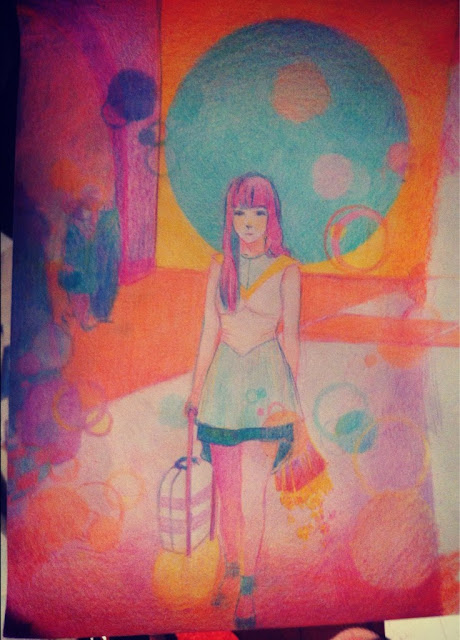 I also moved my desk to another corner of the apartment---having the window right in front of the desk is blinding during the day. I also get to post inspirational pieces above so it's a good arrangement (I'm already pumped to make more art!)